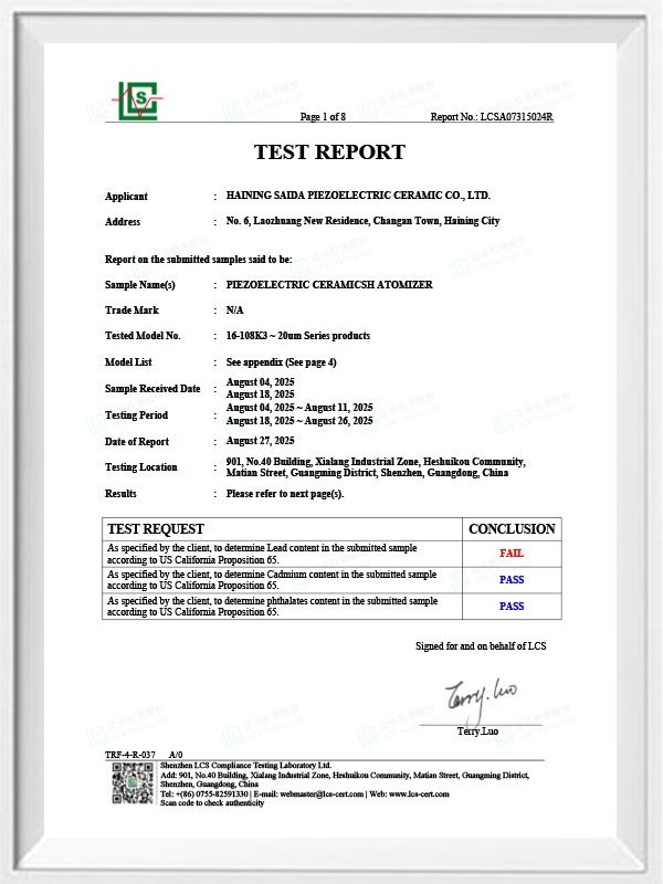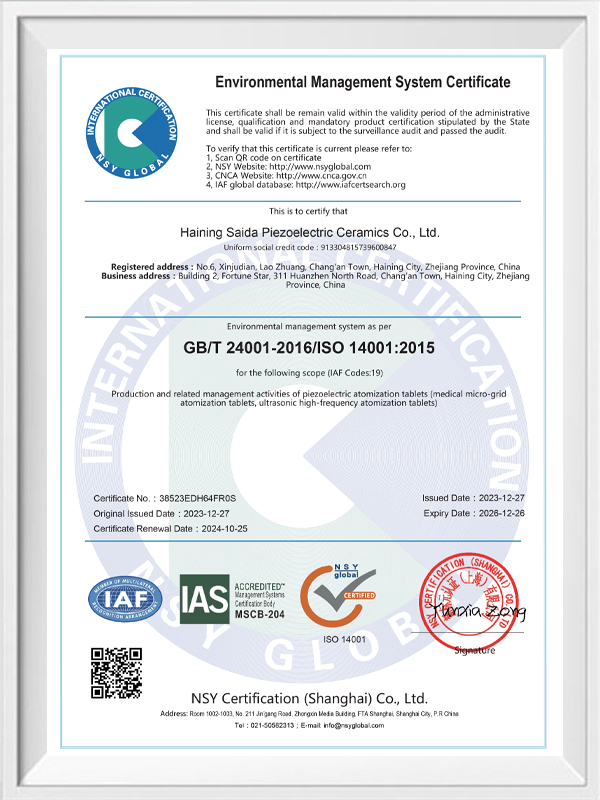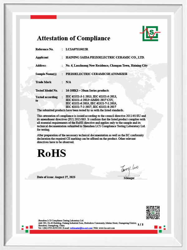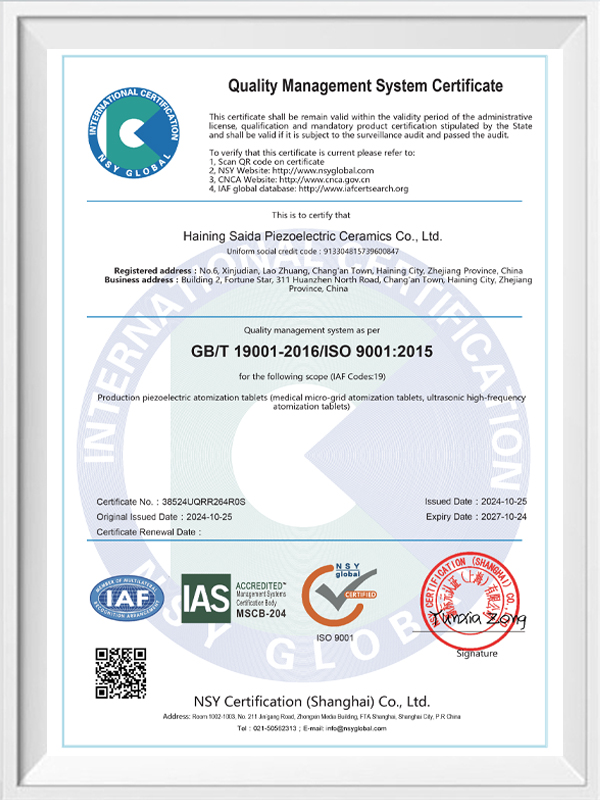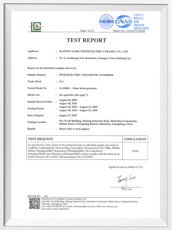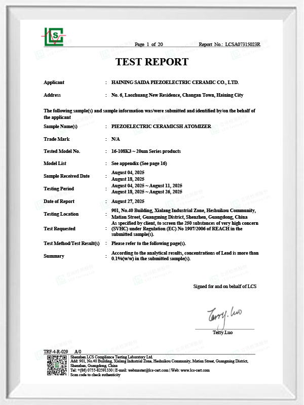 Blyfri piezoelektrisk keramik er kendt som den piezoelektriske industri "perle", fremtiden vil gradvist erstatte bly-baseret piezoelektrisk keramik i alle aspekter, som allerede har den samme piezoelektriske ydeevne, og bly-baseret piezoelektrisk ark. Det er fuldstændig ugiftigt, harmløst, sikkert og miljøvenligt, indeholder ikke bly, antimon og andre tungmetaller og andre Rohs-begrænsede elementer, høj Curie temperatur Tc-328 ° C, meget lavt elektrisk tab TangentLoss Derfor har blyfri piezoelektrisk medicinsk forstøvningschip stor kommerciel værdi og universel værdi, virkelig ikke-giftig og miljøvenlig, blyfri piezoelektrisk keramik ud over ikke-forurenende, piezoelektrisk ydeevne svarende til blybaseret keramik, vil blive en populær miljøvenlig piezoelektrisk keramik. Efter flere års forskning og udvikling, efter kontinuerlig test og eksperimentering, er det lykkedes virksomheden at fremstille den blyfri medicinske forstøvningschip for at opnå samme mængde forstøvning som den blybaserede forstøvningschip og samme diameterpartikelkrav. Blyfri medicinsk mesh-nebulisatorchip, vil helt sikkert skinne og vil få en bred vifte af brugsscenarier.